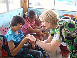 The girls studied 90 hour Thai massage training and volunteer to offer Thai massage to the disabled at Chiang Dao Disable Center in December 2007.