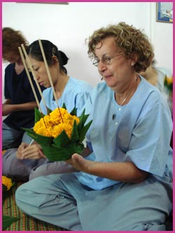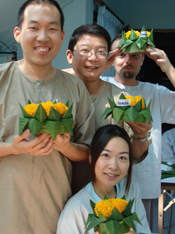 The holy festival to honor the Buddha and pay respect to the river of life by prepare, decorate flower base with flower, candle, incense and float it in the river. TMC students learned how to make them and proudly finished them during their lunch break.