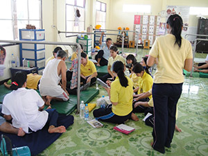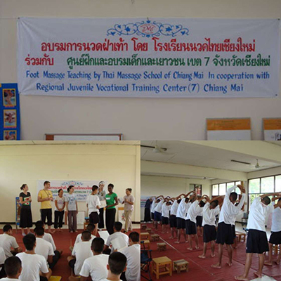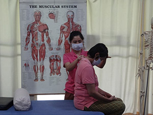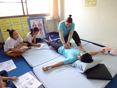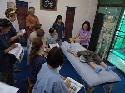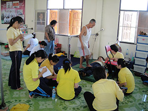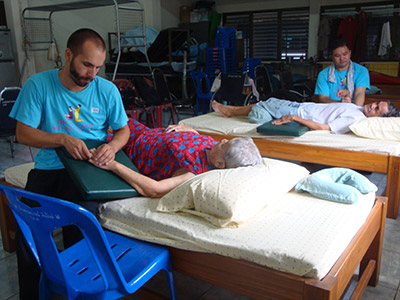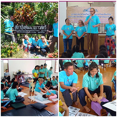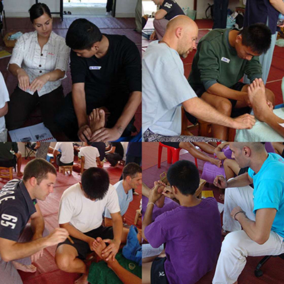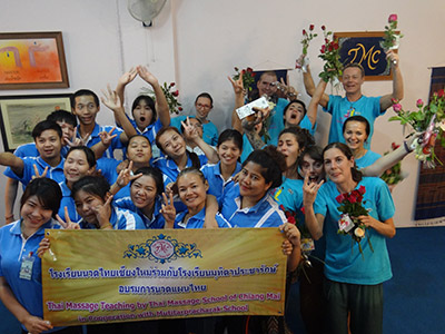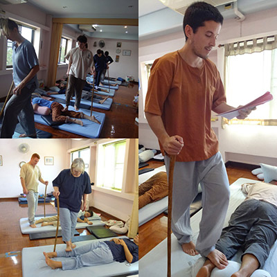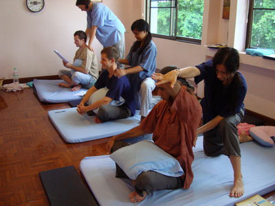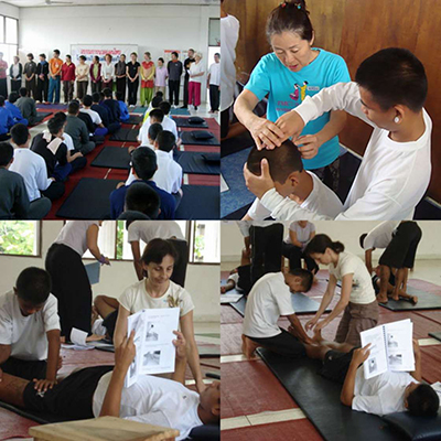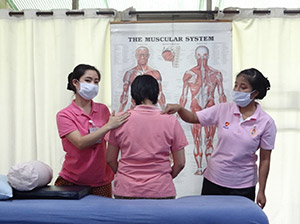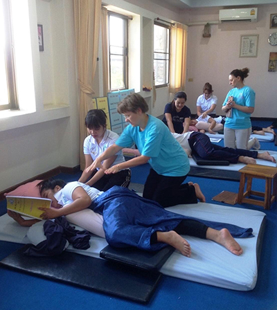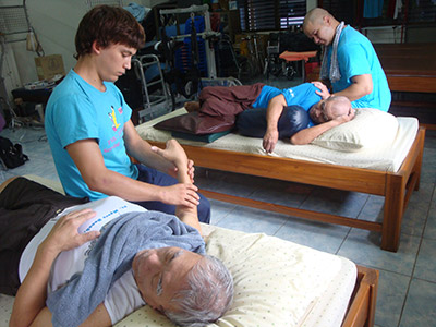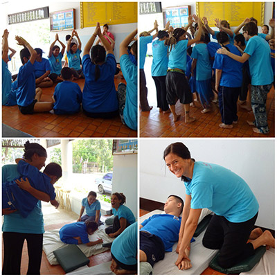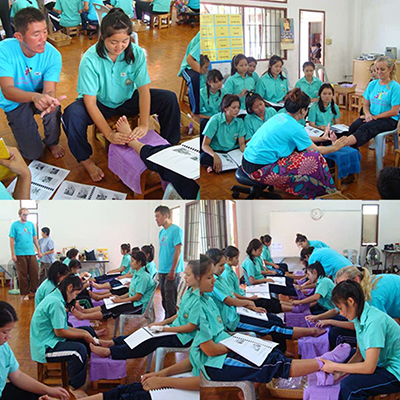 Government Certified Teacher 600 hour program students expand their knowledge in Thai massage to therapeutic healing for people of common conditions. They receive more training in massage practice and perform community services with more complicated conditions seniors at the senior home and to disabled children.