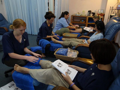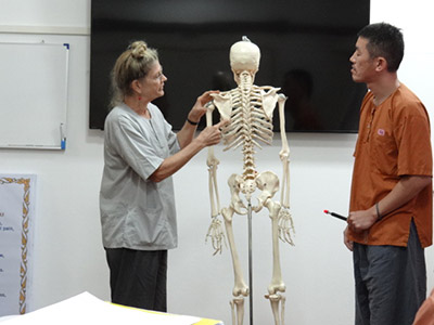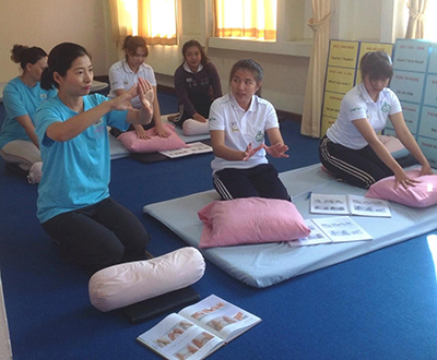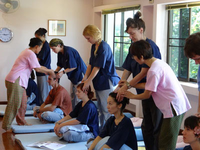 Students practice in pair after demonstration with teacher's closed supervision. According to TMC systematic teaching process, students can learn and absorb all 160 positions—a full body massage session in 5 day learning.
