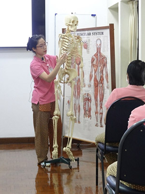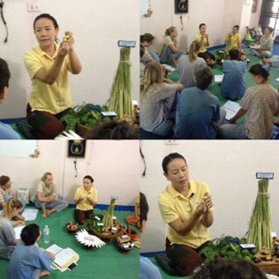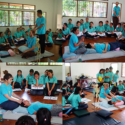 Students also learn general knowledge on Thai massage regarding safe practice, cautionary area and contraindication to massage. The complete explanations are in the given textbook "Ancient Thai Massage Healing with Prana": Fourth Edition".