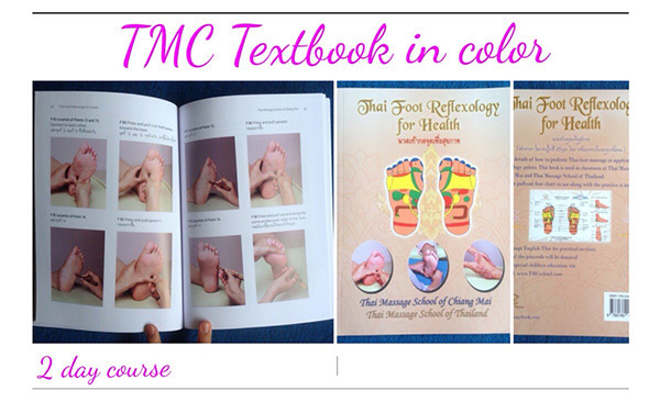 Teacher gives clear- details explanation, how to find the line, sitting and hand positions. Students have TMC textbooks in hands to refer to stretching effect and caution. TMC curriculum, Foundation of Thai Massage level 1 covers whole body massage positions of head, neck, shoulder, facial, back on side lying, back massage face down, arm, abdominal, leg, stretching and closing of session.