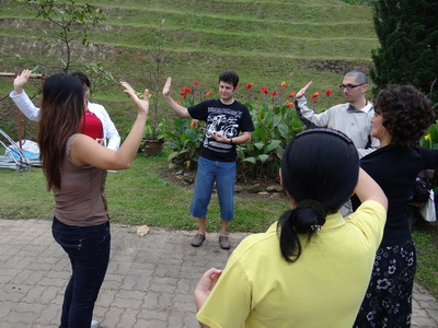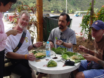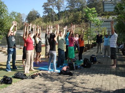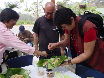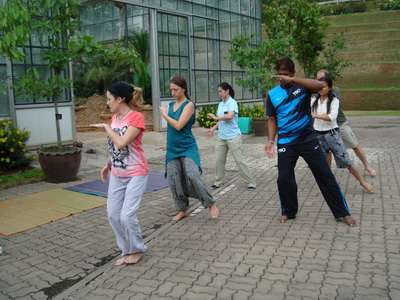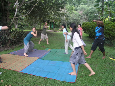 Students enjoy lunch at the garden scenery and explore their teaching potential by leading group to perform some exercises or some tasks. The elephant happen to join in!